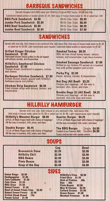 Hillbilly S Bbq Steaks Menu In Lowell North Carolina - O haga una reservacion ahora en uno de nuestros otros 1086 grandes restaurantes en morganton.